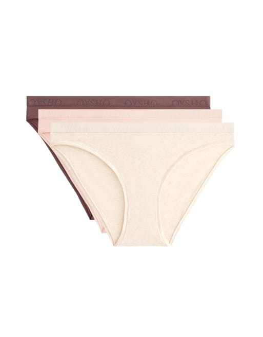 OYSHO - Confezione da 3 slip classici in misto cotone con logo color pietra medio mélange