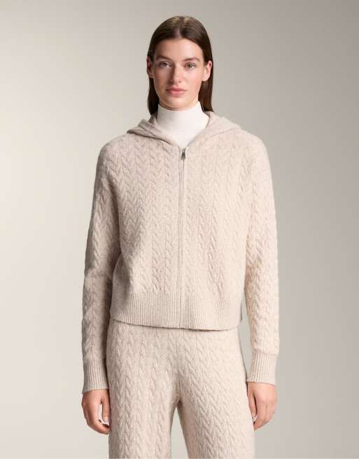 OYSHO - Giacca in maglia a trecce color rosa chiaro con cappuccio