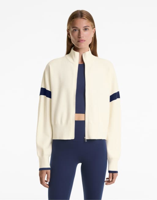 OYSHO - Giacca in maglia color écru con maniche a contrasto