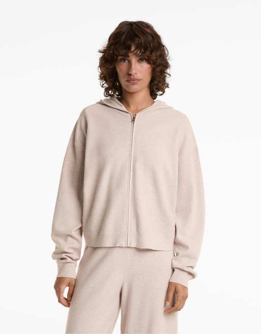 OYSHO - Giacca in maglia piqué rosa chiaro con cappuccio