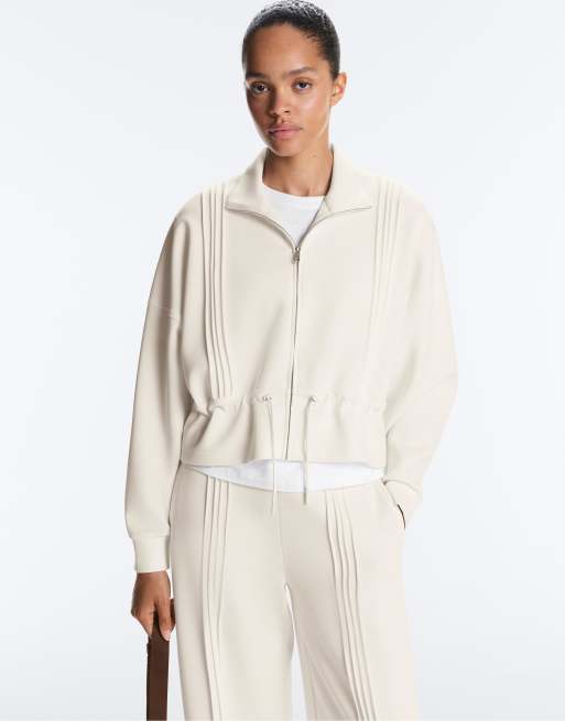 OYSHO - Giacca in modal soft-touch écru con finiture a coste