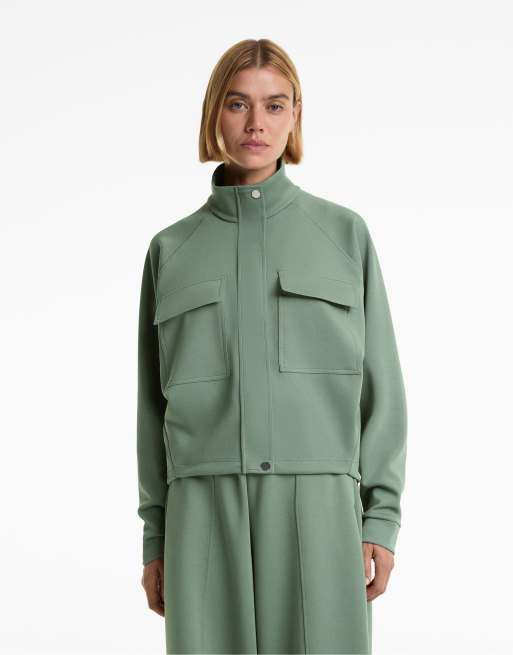 OYSHO - Giacca in piqué di misto cotone verde slavato con tasche