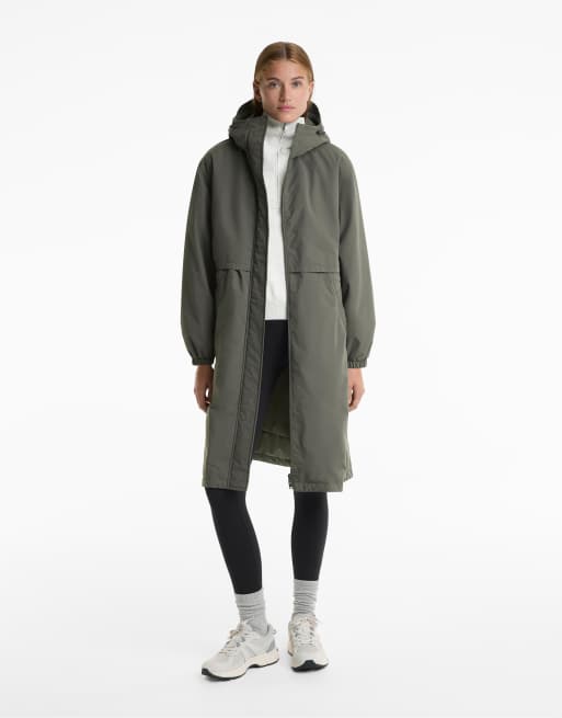 OYSHO - Giacca lunga imbottita impermeabile color kaki scuro con imbottitura Fellex® Aerogel 10k