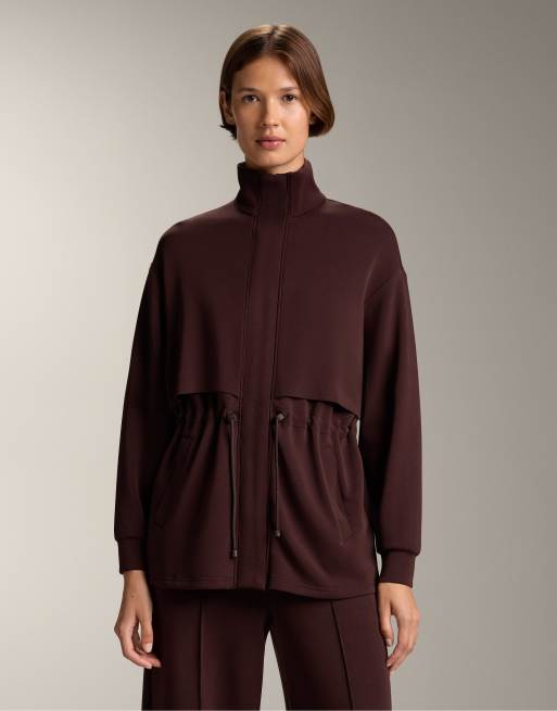 OYSHO - Giacca lunga in misto modal morbido al tatto marrone con tasche