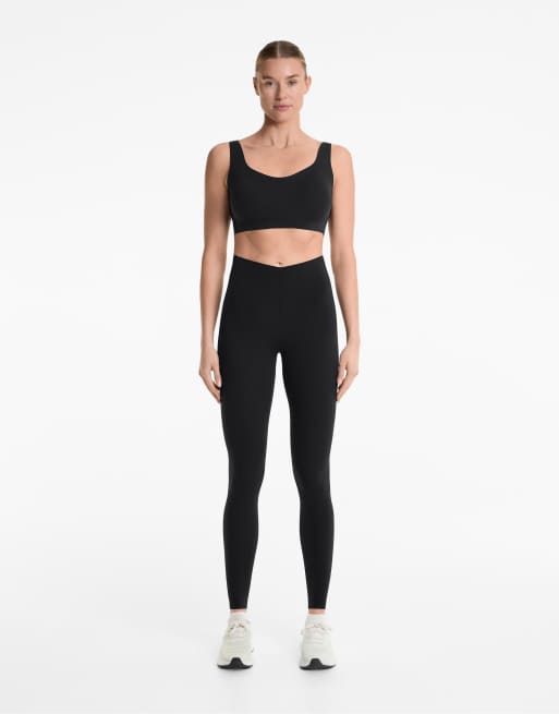 OYSHO - Leggings leggeri da 65 cm neri alla caviglia a vita molto alta e fascia a V in vita