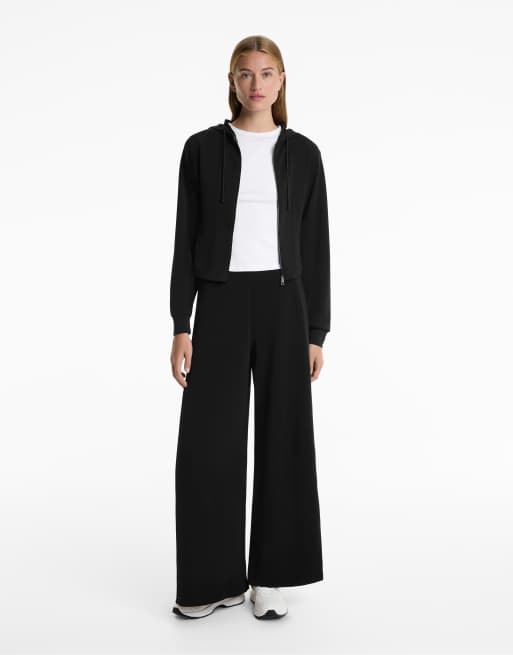 OYSHO - Pantaloni a fondo ampio in misto modal morbido al tatto neri con pieghe laterali
