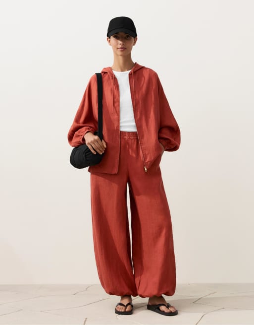 OYSHO - Pantaloni a palloncino in 100% lino rossi