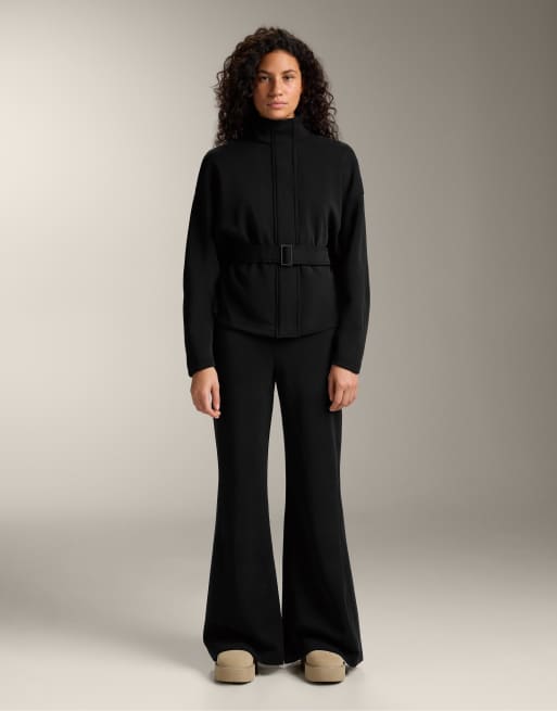 OYSHO - Pantaloni a zampa a vita super alta in modal spazzolato neri