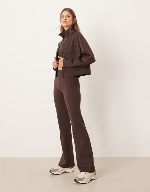 OYSHO - Pantaloni a zampa marroni a vita alta effetto neoprene