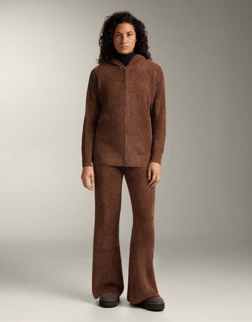 OYSHO - Pantaloni a zampa marroni in ciniglia spessa