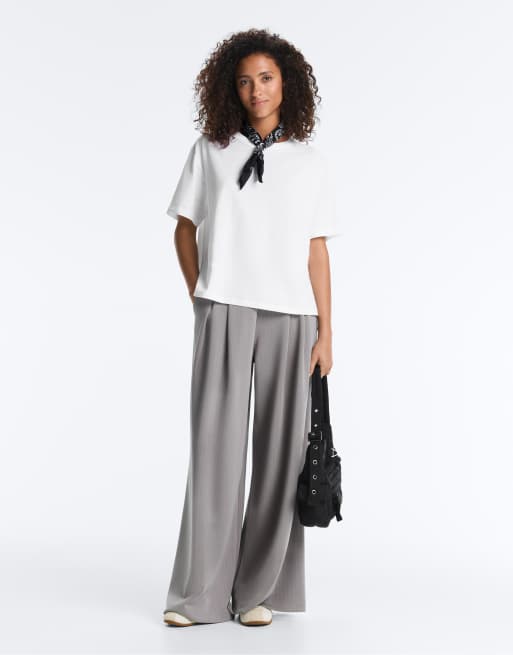 OYSHO - Pantaloni lunghi a pieghe in modal soft touch grigi