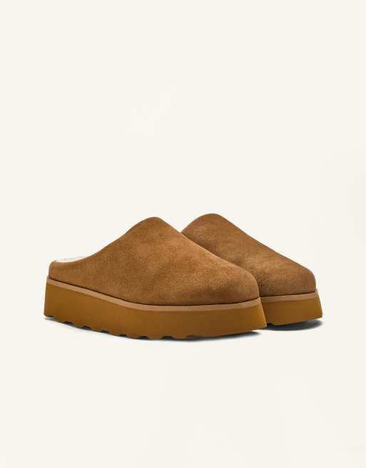 OYSHO - Sabot marroni in pelle sintetica con pelliccia sintetica