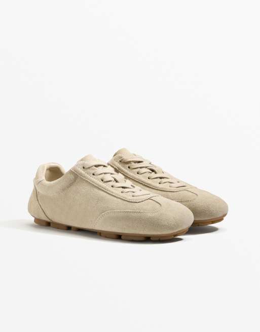 OYSHO - Sneakers stile pantofole color sabbia scamosciate con design combinato