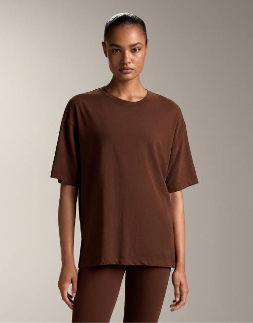 Oysho - T-shirt a maniche corte marrone in misto cotone