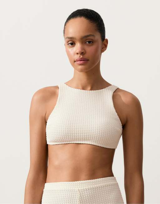 OYSHO - Top bikini all'uncinetto écru con texture a bolle