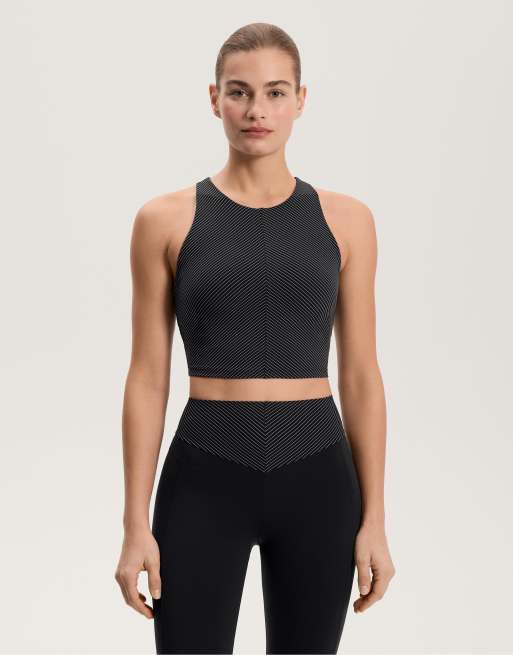 OYSHO - Top senza maniche a compressione nero a righe