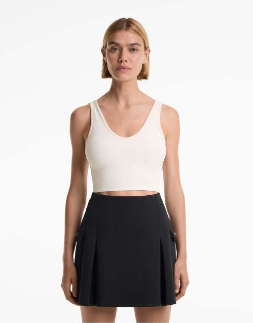 OYSHO - Top senza maniche strutturato écru pallido a coste