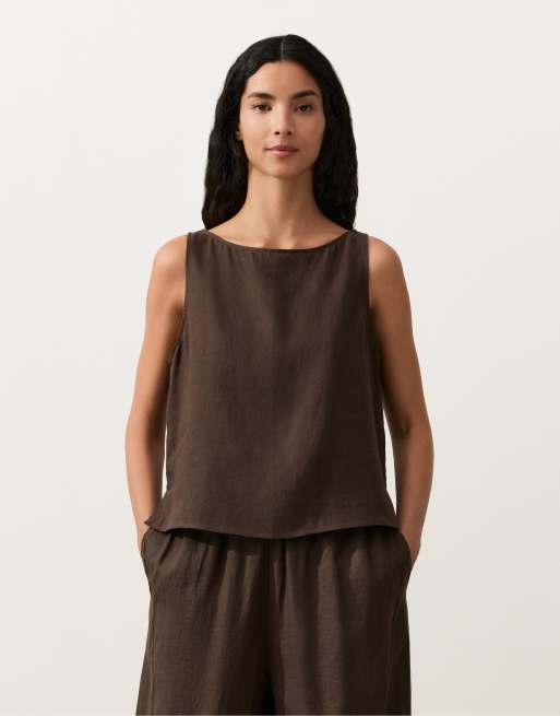 OYSHO - Top squadrato marrone 100% lino