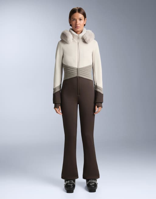 OYSHO - Tuta da sci aderente rosa chiaro color block elasticizzata e resistente all'acqua