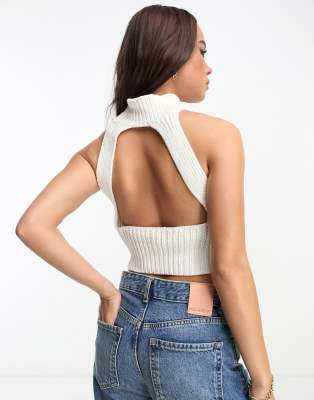 Pacsun - Crop top accollato in maglia bianco sabbia