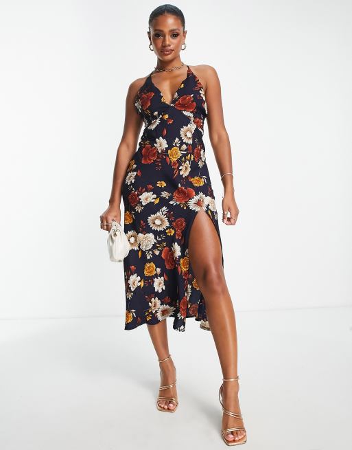 Parallel Lines - Vestito midi a fiori con scollo profondo