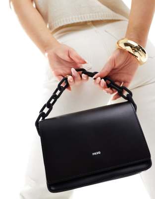 PASQ - Borsa a mano nera con tracolla rimovibile e catena spessa