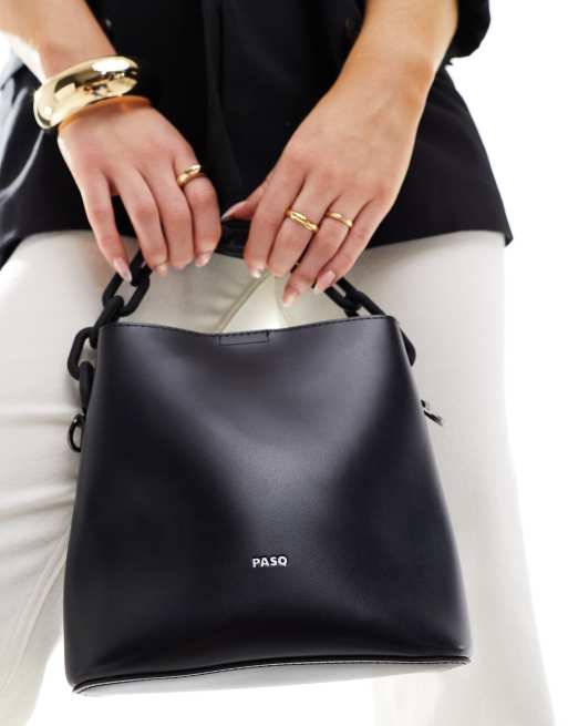 PASQ - Borsa a secchiello nera con tracolla rimovibile e catena sulla parte superiore
