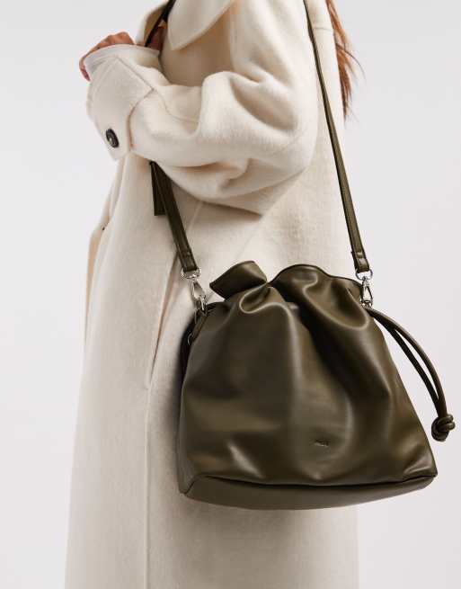 PASQ - Borsa da spalla morbida verde kaki con coulisse