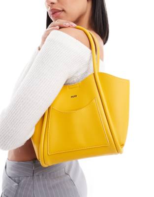 PASQ - Borsa shopping piccola gialla con tasca sul davanti e manico