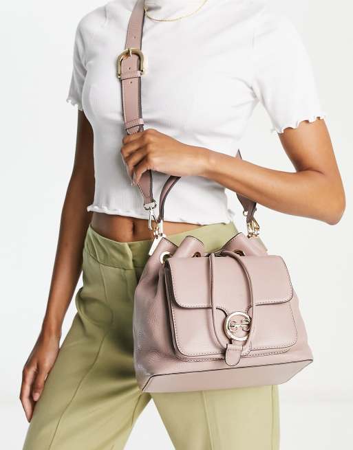 Paul Costelloe - Borsa a secchiello rosa in pelle con tasca anteriore