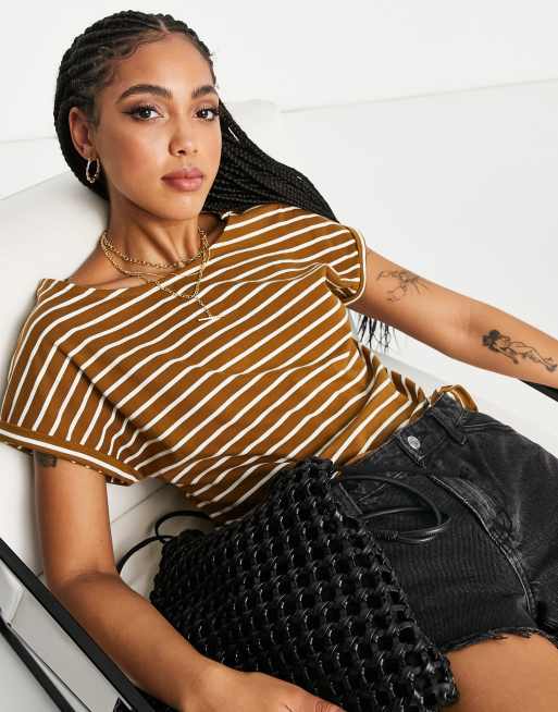 People Tree - Essential - T-shirt comoda in cotone nocciola a righe