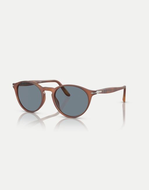Persol - po3092sm - Occhiali da sole rotondi marrone terra di Siena con lenti blu