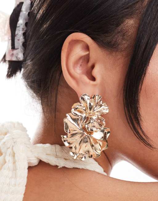 Petit Moments - Noveldo - Orecchini a bottone oversize dorati a fiore effetto martellato