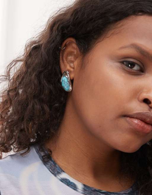 Petit Moments - Valley - Orecchini curvi tonalità argento con pietra turchese