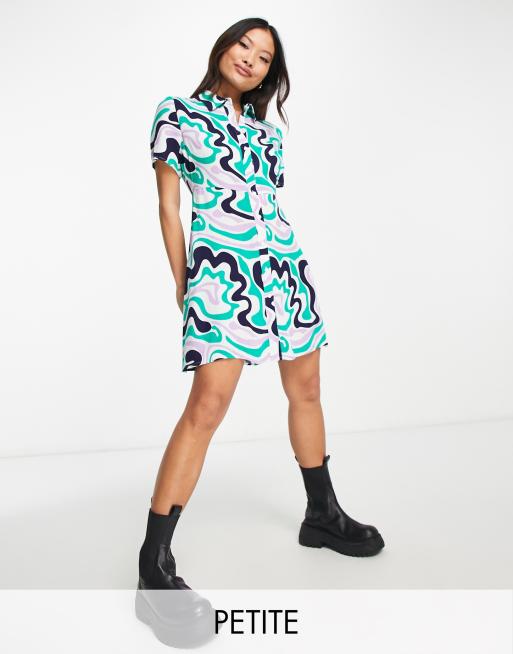 Esclusiva Pieces - Vestito camicia corto con stampa ondulata verde
