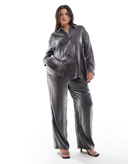 Pieces Curve - Pantaloni grigio metallizzato in coordinato
