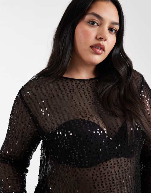 Pieces Curve - Top a maniche lunghe nero con paillettes