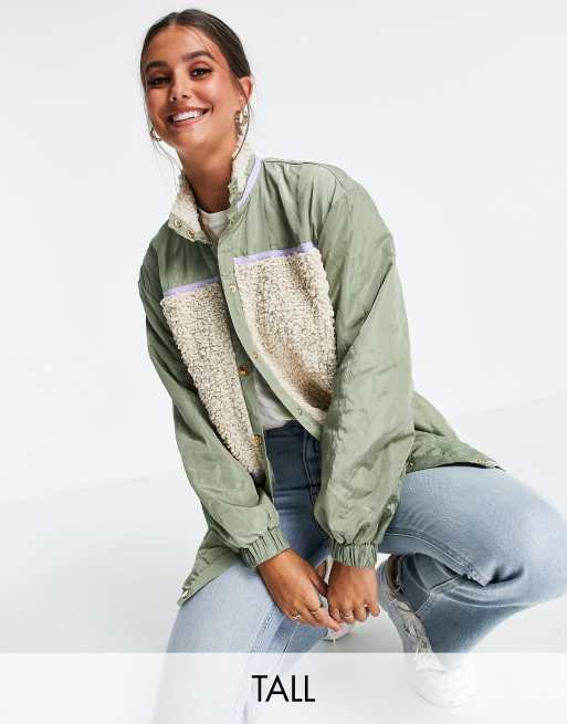 Pieces Tall - Giacca trapuntata verde con pile borg