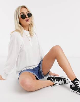 Pieces - Blusa a punto smock con maniche voluminose bianca