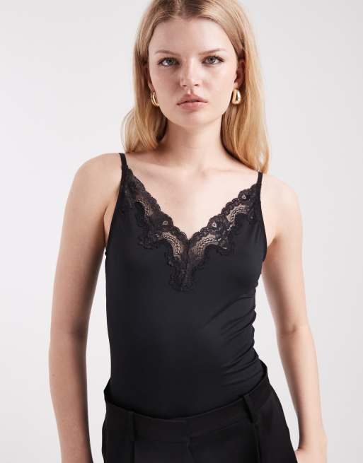 Pieces - Body nero con bordi in pizzo