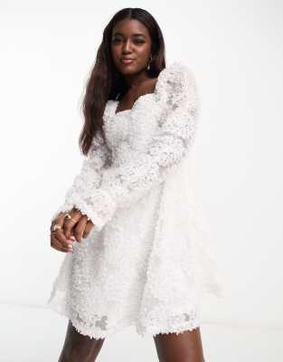 Pieces - Bride To Be - Vestito corto stile skater in pizzo bianco con scollo squadrato