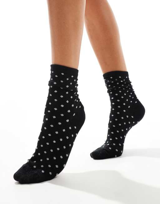 Pieces - Calzini neri a pois glitterati