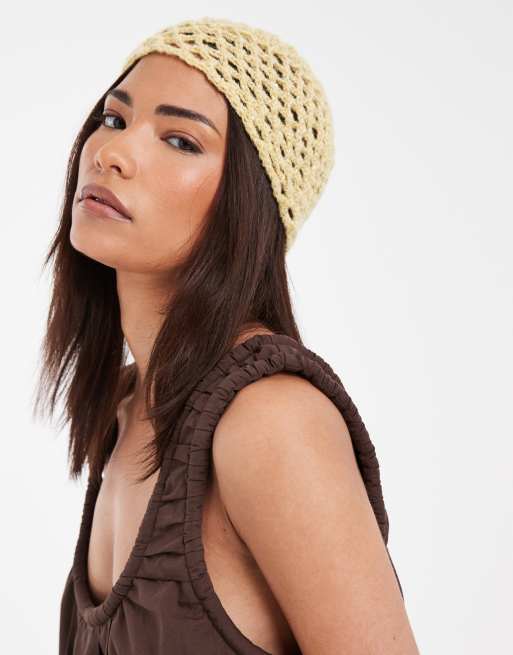 Pieces - Cappello da festival all'uncinetto giallo pastello