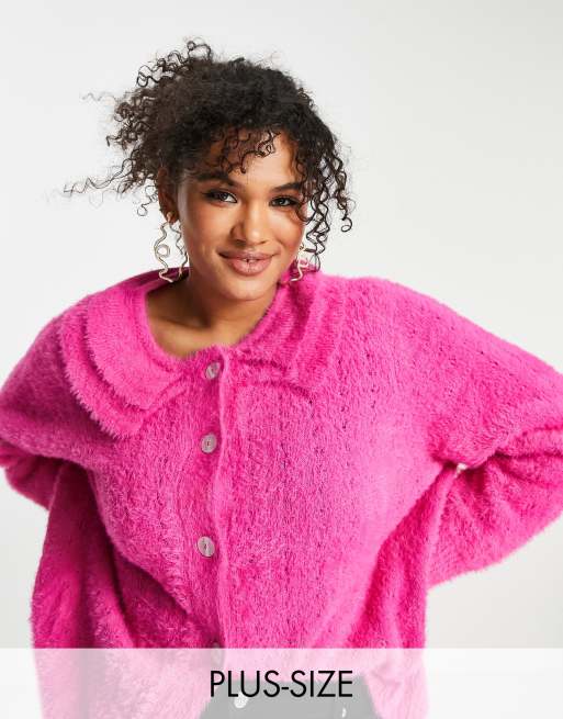 Pieces Curve - Cardigan soffice rosa acceso con colletto