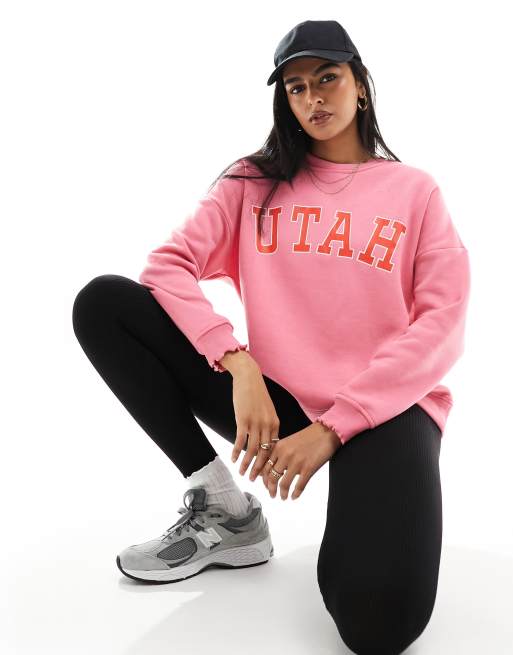 Pieces - Felpa rosa con bordi ondulati e stampa "Utah"