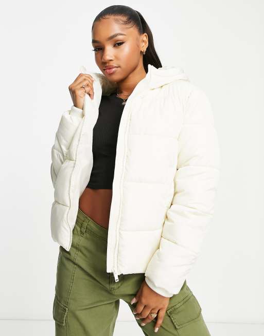 Pieces - Giacca imbottita con cappuccio color crema