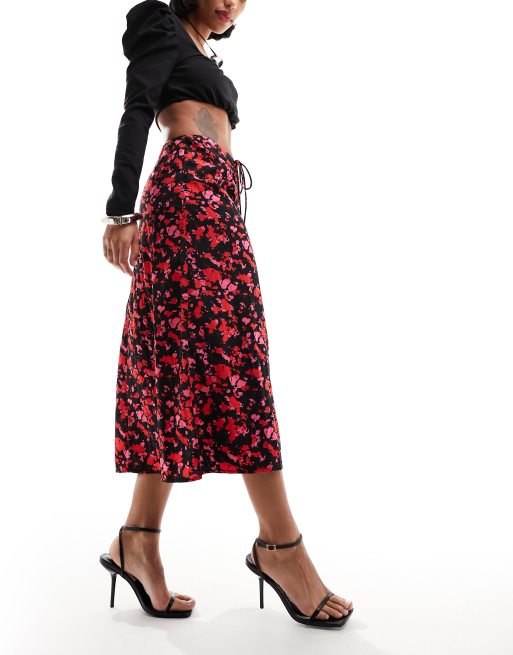 Pieces - Gonna midi allacciata sul davanti con stampa nera e rossa