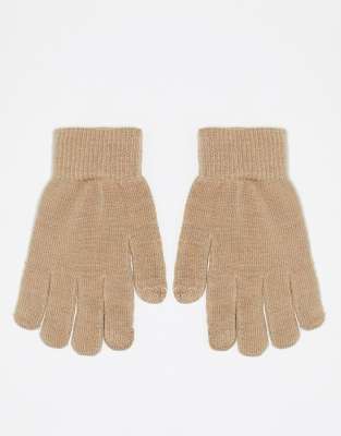 PIECES - Guanti touchscreen in maglia color cammello