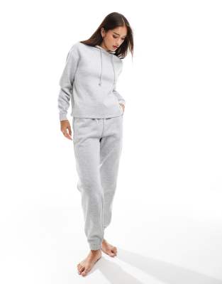 Pieces - Joggers in felpa grigio chiaro mélange con allacciatura in vita in coordinato