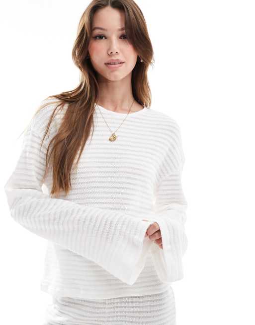 Pieces - Mix and Match - Top in maglia bianco sporco a righe con maniche ampie